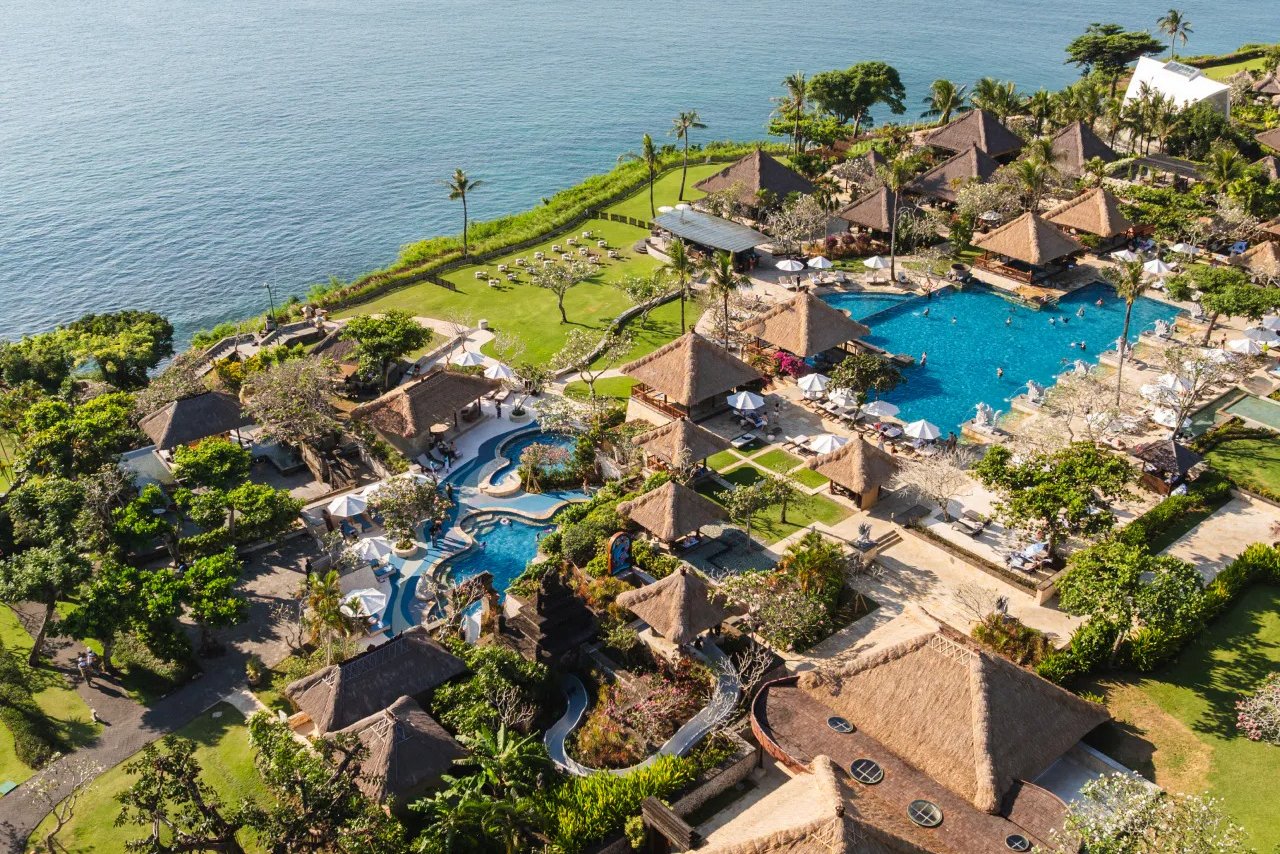 90ヘクタールを有する敷地と、ジンバラン湾を見渡す最高のロケーションに位置する高級リゾート。日本の有名女性誌にも取り上げられるほど知名度も高く、いま注目のホテルです。294室からなるビルディングタイプの客室と78棟のヴィラタイプの客室があり、、ゲストのさまざまなニーズにお応えします。また、スイートルーム以上のお部屋には、すべての女性憧れの天蓋ベッドが設置されているため、一生に一度のハネムーンで滞在される方にもお勧め。アヤナ・リンバを合わせて19カ所あるレストランは、インドネシア料理から日本食まで幅広いお食事を提供しており、滞在するゲストの舌を飽きさせません。また敷地内に点在する12カ所のプールでは、ゆったりとしたリゾート時間をお過ごしいただけます。海に突き出るように設計されたダイナミックな「ロックバー」はバリ島でも1.2を争うほどの人気スポットとなり、インド洋の水平線に沈むダイナミックな夕日は他では味わえない醍醐味です。併設するスパは、本格的タラソテラピーを導入する高級スパ。世界最大級のハイドロセラピー海水プールを始めとした施設も充実。スパトリートメントの技術も定評があります。そして、スパで一番の注目は、「スパオンザロック」。リゾート内に2棟しかない海上の岩に建てられたプライベートルームでお受けいただける極上のトリートメントです。美しく、華やかな南国リゾートをひとつにまとめたこのアヤナリゾートでは、バリ島での理想の時間を過ごすことができます。