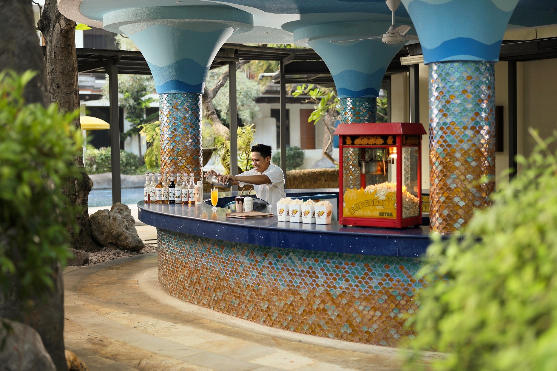 飲食には、日本食、インターナショナルメインレストラン、各プールのカフェ&バーや、−2度のビンタンドラフトビールを海や夕日を眺めながら楽しめるスカイビーチクラブなど、多種にわたりお楽しみ頂けます。また、スパや無料アクティビティが体験できるキッズクラブ、フィットネスセンターやサウナ、テニスコート、ヨガ、出発ラウンジ等、ホテル施設も充実しています。