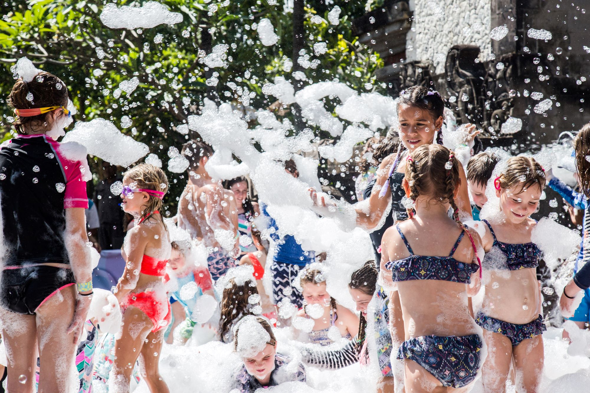 2015年新築したファミリーブロックは、ファミリーに大人気。お子様3名が同室に泊まれる「ファミリールーム」は、2段ベッド+収納ベッド1台がある子供部屋と、ダブルベッドが1台入った大人部屋があるお部屋。目の前には滑り台付きのキッズプールやキッズクラブがあり、お子様が退屈せずに楽しく滞在ができるブロックです。